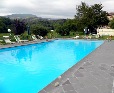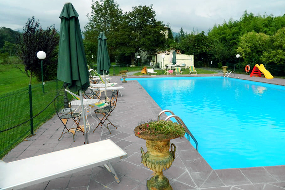 La piscina misura 8 metri in larghezza e 16 in lunghezza, con pavimentazione nuova a norma di legge fatta nell'inverno 2016. Dispone di impianto di ricircolo automatico, con sistemi di filtraggio autopulenti ed un addittivatore automatico per il cloro. Gli impianti di depurazione e sterilizzazione possono lavorare per 10 giorni autonomamente ed automaticamente, senza intervento umano.